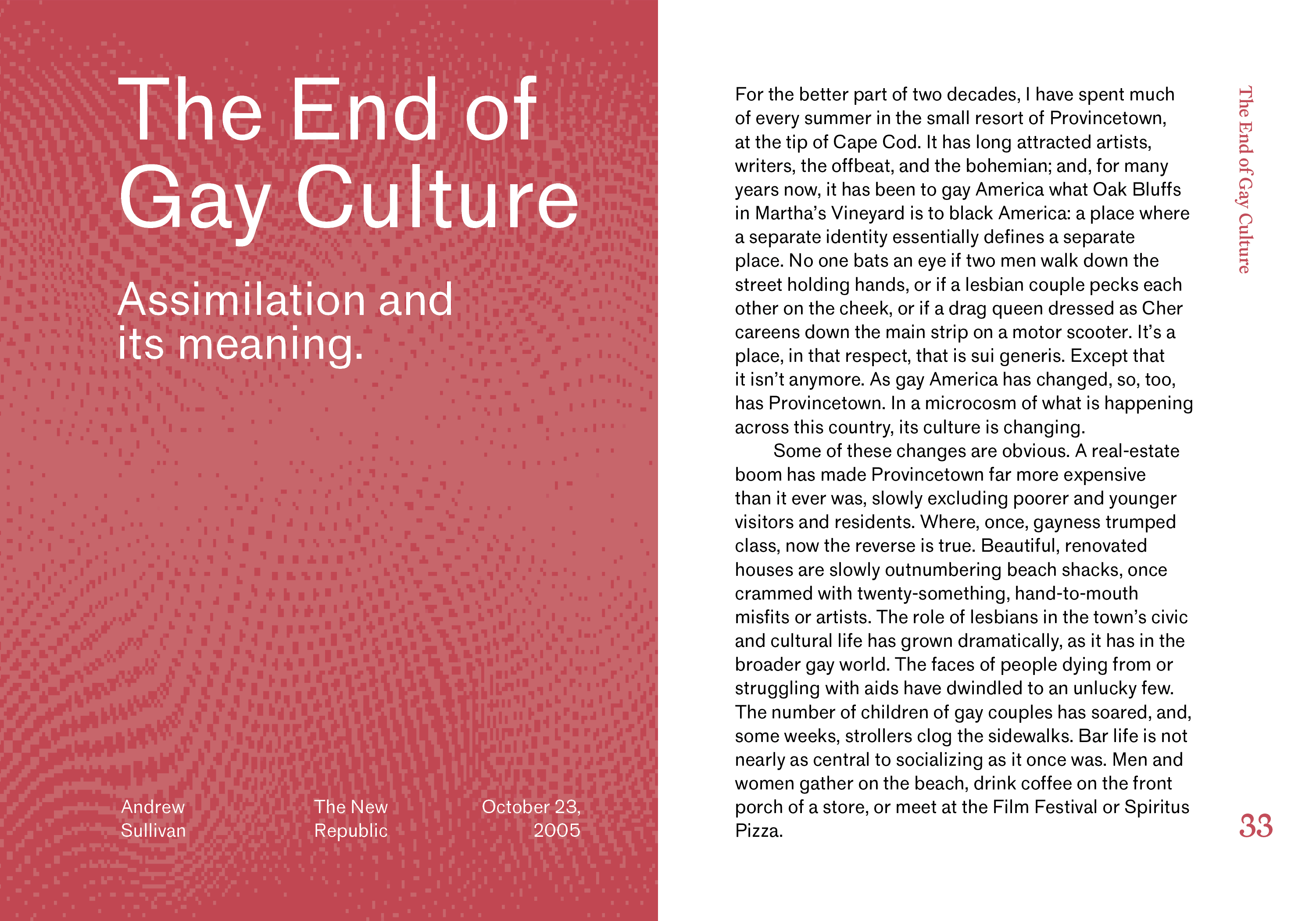 I created the folio with the wider outer margin in mind, a vertically running folio that alternates between author and article between pages.